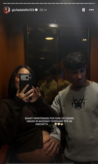 Nelle ultime ore, le sue stories mostrano tutt’altro che una “neo-mamma in clinica”: prima una pizza romana da “Ai Marmi”, poi una foto con Tony Effe e il pancione in vista, accompagnata da una battuta ai follower: